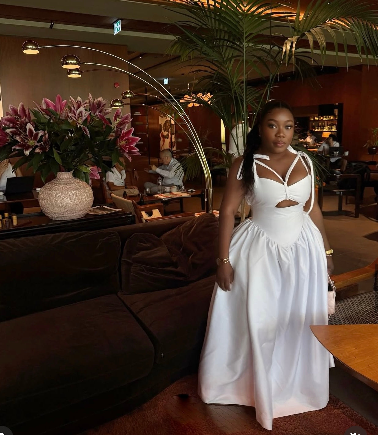 This show-stopping floor-length dress features a full gathered silhouette in breathable 100% cotton, carefully designed to accentuate your curves and flow like air.